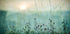 Een rustige herfstzonsopgang boven een weide met fijn stro en wilde bloemen, badend in zacht ochtendlicht. Deze pittoreske compositie combineert tinten groen, goud en paars en roept vrede, vernieuwing en het stille ontwaken van de natuur op.