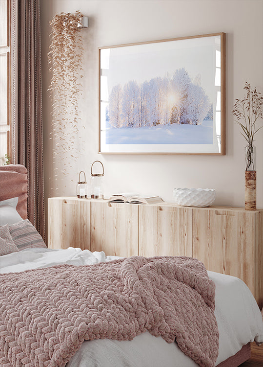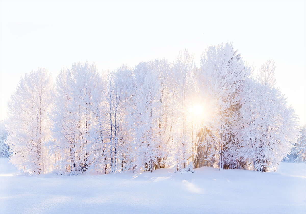 Het winterlicht keert terug in een rustige bosruimte: slanke bomen staan in de vorst en sneeuw, terwijl een zachte, gouden zon door de koele blauwe tinten breekt en lange schaduwen tussen de stammen werpt. "The light return" van EMELIEMaria vangt de rust van een heldere, frisse ochtend, waar de natuur rustig ademt en hoop ontspruit.