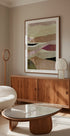 Hills van Dan Hobday is een rustige, moderne abstractie: zachte, gelaagde vormen vormen glooiende heuvels in de kleuren pruim, roze en beige. Eenvoudige contouren en subtiele texturen creëren diepte en balans, waardoor de kamer een stijlvolle, poëtische uitdrukking krijgt - perfect voor een Scandinavische, minimalistische inrichting. Creëert rust en verfijning in elke woonkamer of hal.