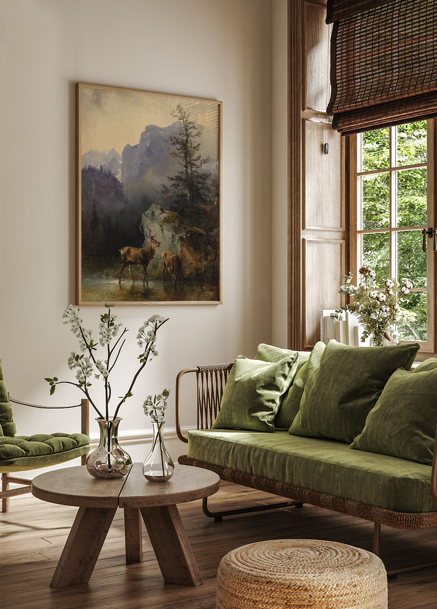 Hirsch en Tier An Der Tränke door Friedrich Gauermann-poster