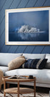 Frosty Island van Günter Kleber legt een rustig wintereiland vast, omringd door ijskoud, spiegelachtig water. Met sneeuw bedekte bomen staan als silhouetten in blauwachtige tinten, terwijl de mist zachtjes de horizon omhult. Een rustig, minimalistisch landschap, waar de kou en het licht elkaar ontmoeten en een bijna meditatieve stilte creëren. De kleuren variëren van diepblauw tot zachtgrijs.