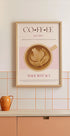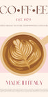 Vintage koffieposter met een kopje latte en ingewikkelde latte-kunst die vers gezette koffie van gebrande bonen benadrukt. Met de focus op Italiaans vakmanschap toont het ontwerp de koffiecultuur sinds 1979. Perfect voor het decoreren en branden van coffeeshops.