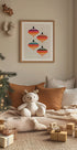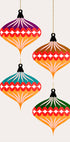 Een kleurrijk en speels kerstkunstwerk met geometrische kerstballen in krachtige kleuren. Met abstracte vormen en feestelijke patronen brengt het ontwerp vreugde en moderne stijl in seizoensgebonden wanddecoratie, perfect voor kerstvieringen.