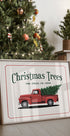 Breng nostalgische vakantiecharme in huis met de kerstbomen van Andreas Magnusson: een vintage rode pick-up boordevol verse dennen, dennen en sparren, geparkeerd bij een feestelijk kraampje langs de weg. Retro tinten, gedurfde typografische bewegwijzering en gezellige sfeer in een kleine stad maken het tot een feestelijk middelpunt.