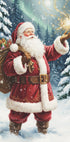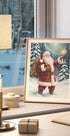 De Kerstman beweegt zich door een besneeuwd bos, terwijl zijn rode jas gloeit tegen de donkere dennenbomen, terwijl sterren en stille sneeuwval een betoverd moment creëren. Een poëtisch eerbetoon aan de magie van de winter door Andreas Magnusson met de iconische Kerstman in het midden. Een perfecte dosis kerstsfeer. Gemaakt voor gezellige decemberdagen.