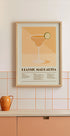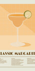 Voeg een vleugje citrus toe aan je interieur met deze kleurrijke poster van de klassieke Margarita-cocktail. Het toont een goudoranje drankje in een glas met een zoutrand en een schijfje limoen, en bevat zowel het recept als een korte geschiedenis van de oorsprong van het drankje. Perfect voor keukenmuren, thuisbars of zomerse galerijmuren — een prachtige combinatie van retro charme en tropische sfeer.