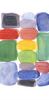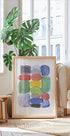 Een moderne abstracte poster met kleurrijke aquarelblokken gerangschikt in speelse geometrische vormen. De overlappende tinten blauw, rood, groen, geel en zwart creëren een levendige maar toch minimalistische uitstraling, perfect voor moderne interieurs en galeriewanden.