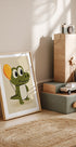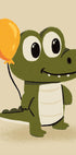 Een vrolijke en speelse illustratie van een schattige krokodil die een oranje ballon vasthoudt. Met zijn grote, vriendelijke ogen en zachte texturen geeft dit kunstwerk een gevoel van plezier en lichtheid - perfect voor kinderkamers, speelkamers of ruimtes die zijn ontworpen om vreugde en verbeelding te inspireren.