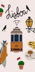 Maak een visuele reis naar Lissabon: een goudgele tram slingert tussen pastelkleurige gevels, blauwe azulejo's en steile heuvels, terwijl kabeldraden en straatlantaarns de lucht omlijnen. Warme tinten, zeebries en het leven uit cafés en sardinebars worden gecombineerd in een tijdloos, grafisch motief dat de ziel van de stad vangt. Zonlicht en uitzicht richting de Tejo maken de reisdroom compleet.