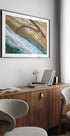 Een adembenemende drone-opname van de kust van Californië bij Big Sur. De beukende golven ontmoeten de zandkust in een verleidelijke, abstracte compositie van de texturen van de natuur. Perfect om de schoonheid en rust van de kust bij u thuis te brengen.