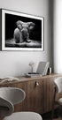 Een dramatische zwart-wit poster van een olifant die door de wateren van de Kafue-rivier in Zambia breekt. Ingetogen verlichting benadrukt rimpels, spieren en waterspatten, terwijl de majestueuze rust contrasteert met de kracht. Gefotografeerd door Gorazd Golob – een sterk, tijdloos motief voor moderne ruimtes. Perfect als eyecatcher in de woonkamer, kantoor of galerij.