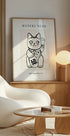 Maneki Neko gelukkige kat poster bevat een minimalistische lijntekening van de iconische Japanse gelukskat, waarvan bekend is dat hij geluk en voorspoed brengt. Met een strakke zwarte illustratie op een zachte, neutrale achtergrond combineert dit stuk culturele symboliek met moderne eenvoud. Perfect om een vleugje charme en positiviteit toe te voegen aan woonkamers, kantoren, of als een attent cadeau voor liefhebbers van de Japanse cultuur en geluksbrengers.