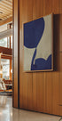 Een opvallende abstracte poster met grote, vloeiende marineblauwe vormen in contrast met een gestructureerde beige achtergrond. De organische beweging van de vormen creëert een gevoel van flow en elegantie, waardoor dit stuk een veelzijdig statement is voor moderne, Japandi of minimalistische interieurs.