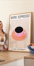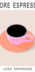 De poster "More Espresso Less Depression" is een speels en opbeurend kunstwerk voor koffieliefhebbers die een goede lach bij hun latte op prijs stellen. Met een minimalistische illustratie van een sterke zwarte espresso in een pastelroze kop en schotel, samen met de grappige tekst "More Espresso, Less Depresso", is dit een charmant eerbetoon aan de energieke magie van koffie. Het strakke ontwerp en de levendige kleuren maken hem perfect voor keukens, cafés, kantoren of koffieshops - waar je ook een shot cafeïne en humor wilt. Het is het ideale cadeau voor koffieliefhebbers met gevoel voor humor en liefde voor moderne, minimalistische kunst.