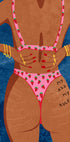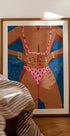 De My Ass My Rules-poster is een onbevreesd en krachtig kunstwerk dat het zelfvertrouwen en de zelfbeschikking van het lichaam viert. Het stuk toont een gebruind figuur in een opvallende roze bikini met een aardbeienpatroon dat op onbeschaamde wijze natuurlijke striae benadrukt en de handgetekende tekst "My Ass My Rules" op de dij. De diepblauwe gestructureerde achtergrond zorgt voor een sterk contrast, terwijl gouden sieraden en felrode nagels een vleugje glamour toevoegen. Perfect voor hedendaagse interieurs, krachtige ruimtes en kunstliefhebbers die compromisloze zelfexpressie omarmen.