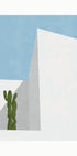 Dit minimalistische kunstwerk vangt de rust van de woestijn met hoge groene cactussen naast moderne witte architectuur. De strakke lijnen, subtiele schaduwen en de helderblauwe lucht creëren een rustige compositie die een warme, zonovergoten sfeer aan je ruimte toevoegt. Perfect voor degenen die eenvoudige, gestructureerde schoonheid en zachte, natuurlijke kleuren waarderen.