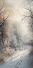 Een kalm winterlandschap ontvouwt zich in gedempte tinten: bevroren dennenbomen, zachte sneeuw en een zwakke mist die de horizon verduistert. Het licht is koel en helder en creëert een gevoel van stilte en contemplatie. Een sfeervolle natuurstudie van Andreas Magnusson voor de rustige hoekjes van het huis. Perfect om rust te creëren in de woonkamer, slaapkamer of kantoor.