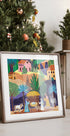 Caroline Bonne Müllers nativity scene fanger julens ro: Maria, Josef og Jesubarnet samles i en varm oplyst stald, mens stjernerne glimter over en vinterlig nat. Blide penselstrøg, naive detaljer og rolige farver skaber en poetisk, familievenlig stemning, der emmer af håb og nærvær. Perfekt til at bringe julefred ind i hjemmet.