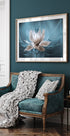 Deze elegante macrofoto legt een delicate bloem vast in zachte witte en blauwe tinten, waardoor de aderen en glinsterende dauwdruppels van de bloemblaadjes worden benadrukt. De dromerige sfeer en gedetailleerde close-ups creëren een verfijnd en rustgevend kunstwerk, perfect voor een moderne botanische fotowand.
