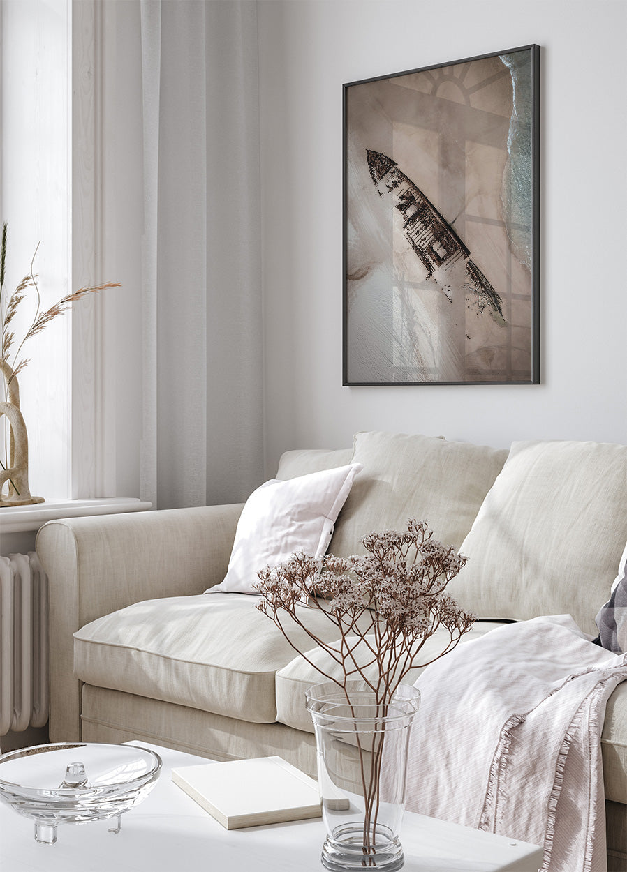 Poster van een oud schip op het strand
