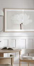 Een witte pioenroos ontvouwt zijn zijdeachtige bloemblaadjes tegen een zachtgrijze achtergrond, waar delicate roze tinten en fijne groene strepen rust en poëzie creëren. Het eenvoudige stilleven voegt tijdloze elegantie en Scandinavisch minimalisme toe aan de kamer, perfect als rustig middelpunt in de woonkamer, slaapkamer of creatieve hoekjes. Een discreet eerbetoon aan de schoonheid van de natuur.