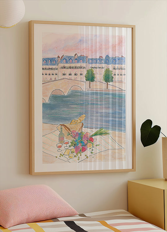 Paris Picnic At the Seine door Katharina Puritscher - Premium kwaliteitspapier met een glad, mat oppervlak en een elegante uitstraling. De matte afwerking vermindert schittering en geeft een verfijnde, tijdloze uitstraling. Sterk en duurzaam voor langdurig gebruik, ideaal voor zowel professionele omgevingen als decoratieve displays.
