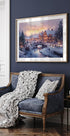 In zachte sneeuw ontvouwt zich een sfeervol kerststadje, waar fijne sneeuwvlokken over gezellige huisjes en dennenbomen vallen. Mensen bewegen zich tussen heldere ramen en schemerige straten, terwijl penseelstreken het onderwerp een pittoreske, tijdloze charme geven. Perfect om de warmte vast te leggen in het koude winterweer. Hang hem in de woonkamer voor een gezellige kerstsfeer.