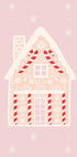 Stap in een suikerzoet winteravontuur: een pastelroze peperkoekhuisje met druipend glazuur, snoeprietranden en kleurrijke winegums die glinsteren in stille sneeuwval. Warme ramen lichten op in de schemering en verspreiden gezelligheid. Gemaakt door Talitha McQueen, een charmante seizoensfavoriet voor de muren van het huis. Perfect voor gezellige kersthoekjes.