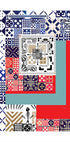 Een levendig, Portugees geïnspireerd abstract patroon waarin azulejo-referenties, strepen en grafische vormen met elkaar verweven zijn in dynamische ritmes van blauwe, rode, zwarte en gouden tinten. Een eerbetoon aan het Portugese idioom, gecreëerd door Awol Art Alex, dat alles van de woonkamer tot het kantoor naar een hoger niveau tilt met grafische rust en kleurrijke warmte.