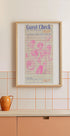 Een speelse en trendy poster met een restaurantgastenkaart in vintage-stijl, bedekt met roze schetsillustraties van cocktails en toastglazen. De mix van typografie en grafische kunst zorgt voor een gedurfd, modern ontwerp, perfect voor keukens, bars of voor iedereen die van eigenzinnige statement-prints houdt.