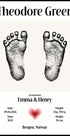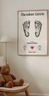 Een tijdloze gepersonaliseerde babyposter met delicate voetafdrukken van pasgeborenen en aangepaste geboortedetails: naam, datum, tijd, gewicht en lengte. Deze minimalistische en emotionele muurkunst is het perfecte aandenken voor nieuwe ouders of een attent cadeau voor een babyshower of kinderkamerdecoratie.