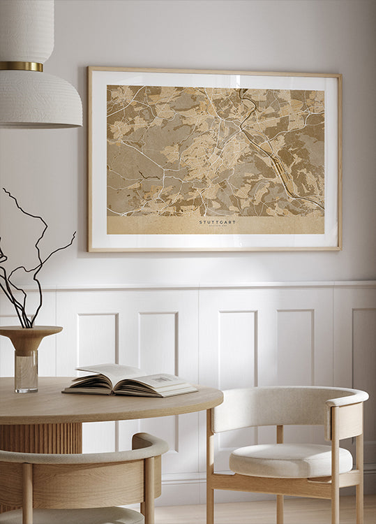 Sepia vintage kaart van het centrum van Stuttgart door Rosana Laiz Blursbyai - Premium kwaliteit papier met een glad, mat oppervlak en een elegante uitstraling. De matte afwerking vermindert schittering en geeft een verfijnde, tijdloze uitstraling. Sterk en duurzaam voor langdurig gebruik, ideaal voor zowel professionele omgevingen als decoratieve displays.