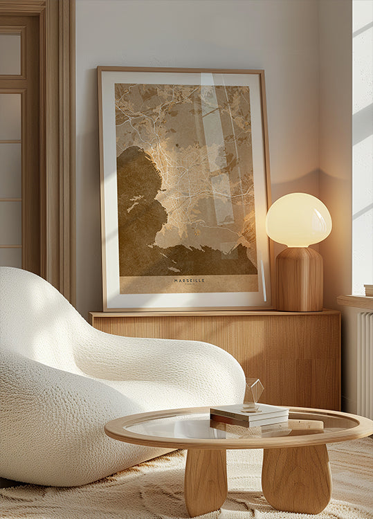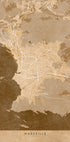 Sepia vintage kaart van Marseille Frankrijk door Rosana Laiz Blursbyai - Premium kwaliteit papier met een glad, mat oppervlak en een elegant gevoel. De matte afwerking vermindert schittering en geeft een verfijnde, tijdloze uitstraling. Sterk en duurzaam voor langdurig gebruik, ideaal voor zowel professionele omgevingen als decoratieve displays.