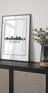 Een elegant, minimalistisch motief van de skyline van Amsterdam: grachtenpanden met trapgevels, slanke bruggen en een klassieke windmolen getekend in strakke lijnen tegen een kalme, donkere nachtelijke hemel. Discrete contrasten en weinig grafische details zorgen voor een moderne look. Gemaakt door kunstenaar Kristina N. (SoulArt Shop). Perfect voor liefhebbers van de stad en het Scandinavische minimalisme.