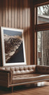 Et storslået vinterpanorama åbner sig i en snedækket dal, indrammet af dramatiske tinder i San Juan Mountains ved Telluride, Colorado. En stille bjergby hviler mellem granerne, mens en ensom vej skærer gennem det frostklare landskab. Scenen emmer af ro, sprød luft og tidløs alpin majestæt. Af Del Mundo Imagery.