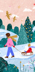 Snowy Sledge Walk by Bea Müller captures a cozy winter ramble through a frosted forest: bundled figures tug a bright sled past twinkling pines, soft snowfall and dusky skies. Playful color blocks and gentle textures evoke festive warmth, childhood wonder, and the hush of a snowy holiday stroll. A charming scene to spark holiday cheer.