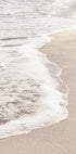 Een rustgevende, minimalistische foto van zachte oceaangolven die over de zandige kust spoelen. Met zachte beige tinten en fijne structuren vangt het werk het kalme ritme van de zee en de tijdloze schoonheid van eenvoud.