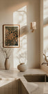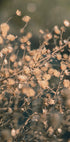 Een delicate close-up van beige wilde bloemen die zwaaien in het licht, vastgelegd in een zachte macrostijl met dromerige bokeh op de achtergrond. Dit botanische kunstwerk straalt warmte en rust uit en past perfect in een op de natuur geïnspireerde en minimalistische interieur.