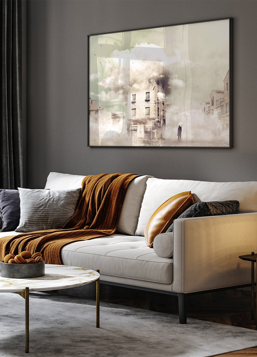 Surrealistische stadsposter