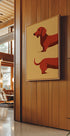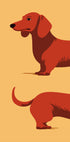 Een speelse minimalistische illustratie van een teckel, op humoristische wijze weergegeven in twee afzonderlijke delen met het lange lichaam uitgestrekt over de compositie. Dit moderne en onderscheidende kunstwerk weerspiegelt de charme van de geliefde "worsthond" en is perfect voor hondenliefhebbers en moderne interieurs.