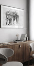 Twee zebra's ontmoeten elkaar in een tedere omhelzing op de Keniaanse savanne op deze poëtische zwart-wit fotoposter. Tender Moment van fotograaf John Fan legt kalmte, nabijheid en tijdloze elegantie vast met een heldere uitdrukking, waarbij het grafische ritme van de strepen een minimalistisch symbool wordt van liefde en saamhorigheid. Een eerbetoon aan de poëzie van de natuur.