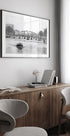Magisk byblik af Magere Brug i Amsterdam, fortolket af Corné Akkers. Den ikoniske klapbro spænder over Amstel, flankeret af kanalhuse, træer og stille både. Monokrom linjeføring og bløde skygger fremhæver refleksionerne i vandet og skaber en rolig, tidløs stemning i byens hjerte. Perfekt til elskere af byens poesi og nordisk minimalisme.