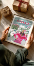 Duik in de winterglamour van Gstaad met de stijlvolle poster van Caroline Bonne Müller: een zelfverzekerde vrouw in een felroze monopak en spiegelbril overweegt met sneeuw bedekte dennenbomen en chaletdaken terwijl de Alpen gloeien in de lage winterzon. Vintage-geïnspireerde typografie geeft de scène een chique, tijdloze reislook. Perfect om te dromen van pistes, pijnbomen en après-ski.