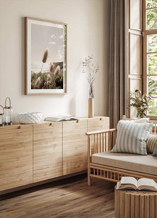 Een poster met zacht gras in een berglandschap, ideaal om elke kamer een kalme en natuurlijke schoonheid te geven.