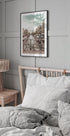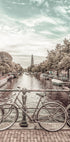 Een sfeervol eerbetoon aan Amsterdam: langs een rustige gracht staan fietsen geparkeerd naast kasseien en smalle puntgevelhuisjes, terwijl op de achtergrond de Westertårnet iconisch oprijst. In een urban vintage stijl met zachte contrasten en discrete turquoise accenten legt Melanie Viola de tijdloze charme van de stad vast. De sfeer van de Prinsengracht is tot in elk detail voelbaar.