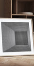 "lost perspective" van Theodoor Ferdinand toont een monochrome studie van een stadiongevel in Amsterdam. Hellende lijnen, golvend metaal en modulaire velden vormen een grafisch patroon waarbij licht en schaduw de diepte verschuiven. Een cool, architectonisch motief dat rust, ritme en precisie balanceert. Perfect voor minimalistische ruimtes.