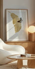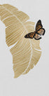 Een verfijnd, minimalistisch kunstwerk met een gouden palmblad en een subtiel gedetailleerde monarchvlinder. De strakke compositie combineert tropische elegantie met natuurlijke symboliek, waardoor het een tijdloos botanisch motief is, perfect voor moderne of rustieke interieurs.