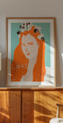 Vrouw met oranje haar versierd met bloemenposter