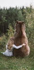 Stap een sprookjesbos binnen waar een jonge vrouw zich nestelt in de dikke vacht van een zachtaardige bruine beer, ogen gesloten in vertrouwen en kalmte. Dit dromerige portret, gemaakt door kunstenaar Olga Barantseva, viert tederheid, bescherming en de stille magie van vriendschap tussen mens en wild. Een teder duet van moed en zorg, perfect voor dromers en romantici.