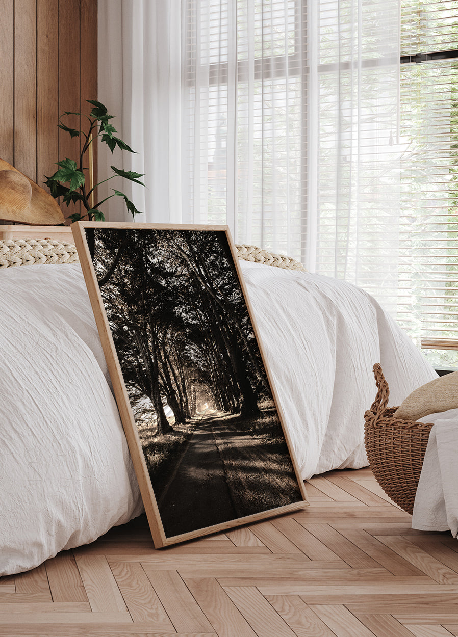 Weg tussen bomen poster